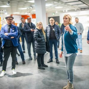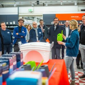 In zwei Gruppen ging es durch die Ausstellung auf mehreren Etagen, die drei Mal im Jahr zur Messefläche wird. Elektro, Spielwaren, Baby, Mode, Wohnen, Glas, Porzellan, Keramik, Heimwerken, Sport und Bücher – das Produkt- und Themenspektrum des vor 101 Jahren gegründeten Unternehmens ist vielfältig. Rund 4.000 inhabergeführte Einzelhandelsunternehmen mit 8.000 Geschäften in 14 europäischen Ländern sind Mitglieder bei EK Retail. Das Credo: Gemeinsam ist man stärker. Und so bieten die Bielefelder „ihren“ Einzelhändlern Services, die weit über eine gemeinsame Warenbeschaffung hinausgehen. „Unsere Kunden müssen sich um Bereiche wie zum Beispiel Warenwirtschaft oder Cyber Security nicht alleine kümmern“, so Daniel Kullmann. „Wir qualifizieren unsere Händler.“ Und so versteht sich EK Retail insgesamt als Kompetenznetzwerk. Egal, ob es um Telekommunikationsverträge, Fahrzeugleasing, Shopgestaltung oder Social-Media-Konzepte geht.