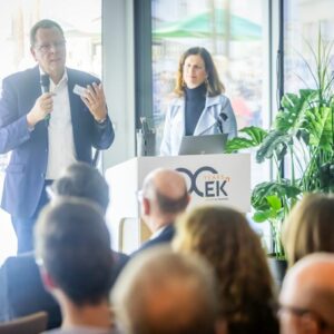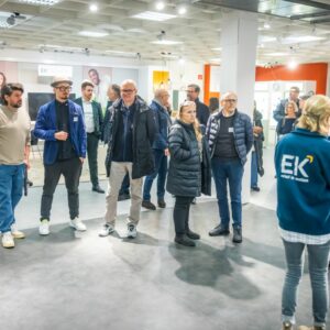 (Bielefeld, 16. Februar 2026) Der Marketing Club Ostwestfalen-Lippe war zu Gast bei EK Retail in Bielefeld-Oldentrup. Die alljährliche Mitgliederversammlung stand auf dem Programm. Aber zuvor gaben Daniel Kullmann, Head of Corporate Marketing and Communications, und Melina Wosnitza, Senior Corporate Communications & Events Manager bei der EK – beide übrigens schon mehr als 20 Jahre im Unternehmen – im Rahmen einer Führung einen exklusiven Einblick, was den genossenschaftlich organisierten Mehrbranchenverbund so besonders macht.
