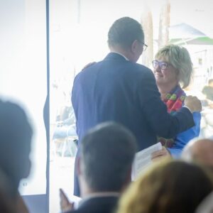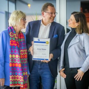 Ein besonders emotionaler Moment der Mitgliederversammlung war die Verabschiedung des langjährigen Geschäftsführers André Mielitz, der die Geschicke des Marketing Clubs 25 Jahre mit großem Engagement und persönlichem Einsatz geprägt hat. „Eine Leistung, auf die er zu Recht stolz sein kann“, wie die ehemalige MC-Präsidentin und langjährige Mitstreiterin Susanne Schäfer-Dieterle in ihrer Laudatio betonte. Über die vielen Jahre hinweg war André Mielitz nicht nur organisatorischer Anker im Hintergrund, sondern strategischer Impulsgeber, verlässlicher Ansprechpartner und wichtiger Netzwerker. Er initiierte neue Formen der Kommunikation – mit dem Club Report – und begleitete den Aufbau der Website. Erstmals gab es digitale Infos über den Club, seine Veranstaltungen und die Möglichkeit, sich anzumelden. In ihrem Rückblick auf 25 Jahre erinnerte Susanne Schäfer-Dieterle an die legendäre Feier zum 50. Jubiläum in der gerade eröffneten Dr. Oetker Welt, die fünf Präsident*innen in der Zeit, und dass der gebürtige Berliner seine berufliche Karriere 1981 zunächst in Gütersloh startete und 1999 die Agentur Artgerecht in Bielefeld gründete. Ab 2001 hatte auch die Geschäftsstelle des Marketing Clubs ihren Sitz in der Agentur. Die Freude am Austausch, an Menschen und daran, Verantwortung zu tragen – das macht André Mielitz aus. Dass der Club heute ein solch lebendiges Netzwerk ist, ist auch auf sein unermüdliches Engagement zurückzuführen. Sichtbar ergriffen, dankte er der Laudatorin: „Das hätte niemand besser machen können als du, Susanne.“ Abschließend übergab er den Staffelstab an Daniela Köller, verbunden mit den besten Wünschen.