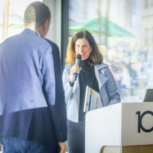 Ein besonderes Augenmerk legte MC-Präsidentin Sabine Schoner auf den Nachwuchs, um den Club beizeiten zu verjüngen. Mit viel Engagement haben Lilian Weers und Luis Denninghoff den Marketing Pionieren (Marketeers bis 33 Jahre) zu neuem Schwung verholfen. Bielefelds next generation hat erfolgreich auf die Zielgruppe zugeschnittene Events organisiert, um den Austausch zu fördern, aus der eigenen Blase herauszukommen und den Horizont zu erweitern. Angefangen bei einem Gin-Tasting im Bielefelder Hof über Gründerstorys und Social-Media-Trends bis hin zu KI-Tools für Marketing. An diesem Abend appellierten die beiden Sprecher der Pioniere an die anwesenden Mitglieder, ihre jungen Mitarbeitenden zu motivieren, bei den Marketing Pionieren mitzumachen und den Nachwuchs mit eigenen Erfahrungen, Kontakten und Know-how zu unterstützen.