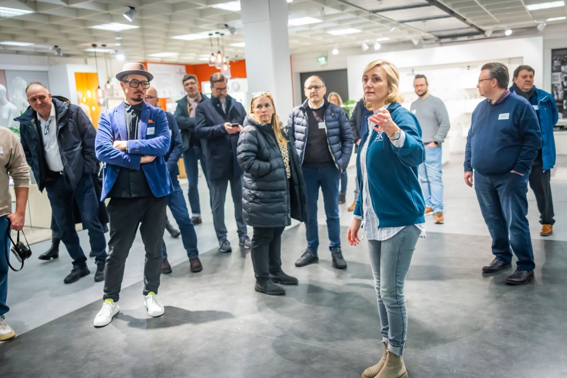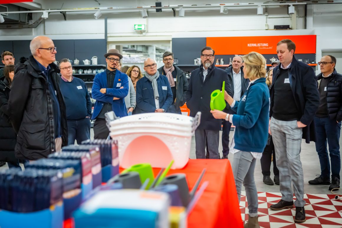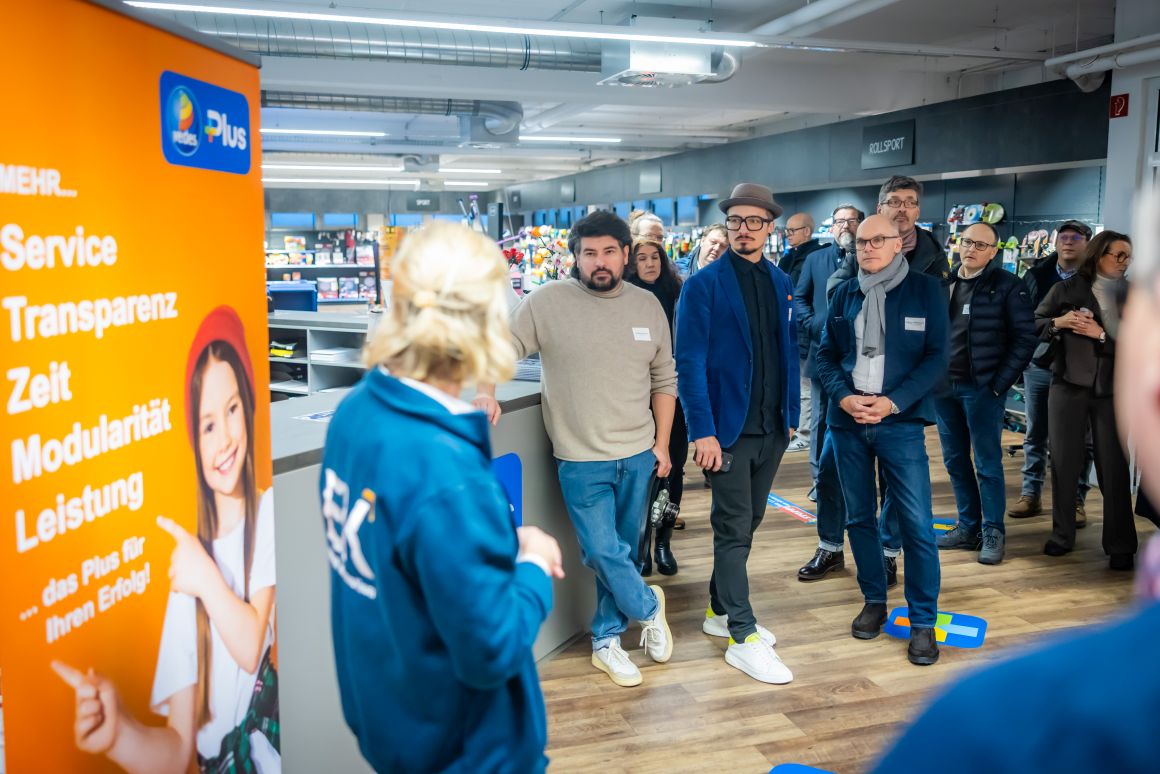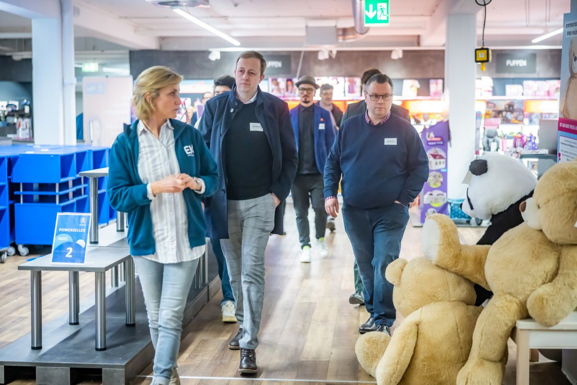 In zwei Gruppen ging es durch die Ausstellung auf mehreren Etagen, die drei Mal im Jahr zur Messefläche wird. Elektro, Spielwaren, Baby, Mode, Wohnen, Glas, Porzellan, Keramik, Heimwerken, Sport und Bücher – das Produkt- und Themenspektrum des vor 101 Jahren gegründeten Unternehmens ist vielfältig. Rund 4.000 inhabergeführte Einzelhandelsunternehmen mit 8.000 Geschäften in 14 europäischen Ländern sind Mitglieder bei EK Retail. Das Credo: Gemeinsam ist man stärker. Und so bieten die Bielefelder „ihren“ Einzelhändlern Services, die weit über eine gemeinsame Warenbeschaffung hinausgehen. „Unsere Kunden müssen sich um Bereiche wie zum Beispiel Warenwirtschaft oder Cyber Security nicht alleine kümmern“, so Daniel Kullmann. „Wir qualifizieren unsere Händler.“ Und so versteht sich EK Retail insgesamt als Kompetenznetzwerk. Egal, ob es um Telekommunikationsverträge, Fahrzeugleasing, Shopgestaltung oder Social-Media-Konzepte geht.