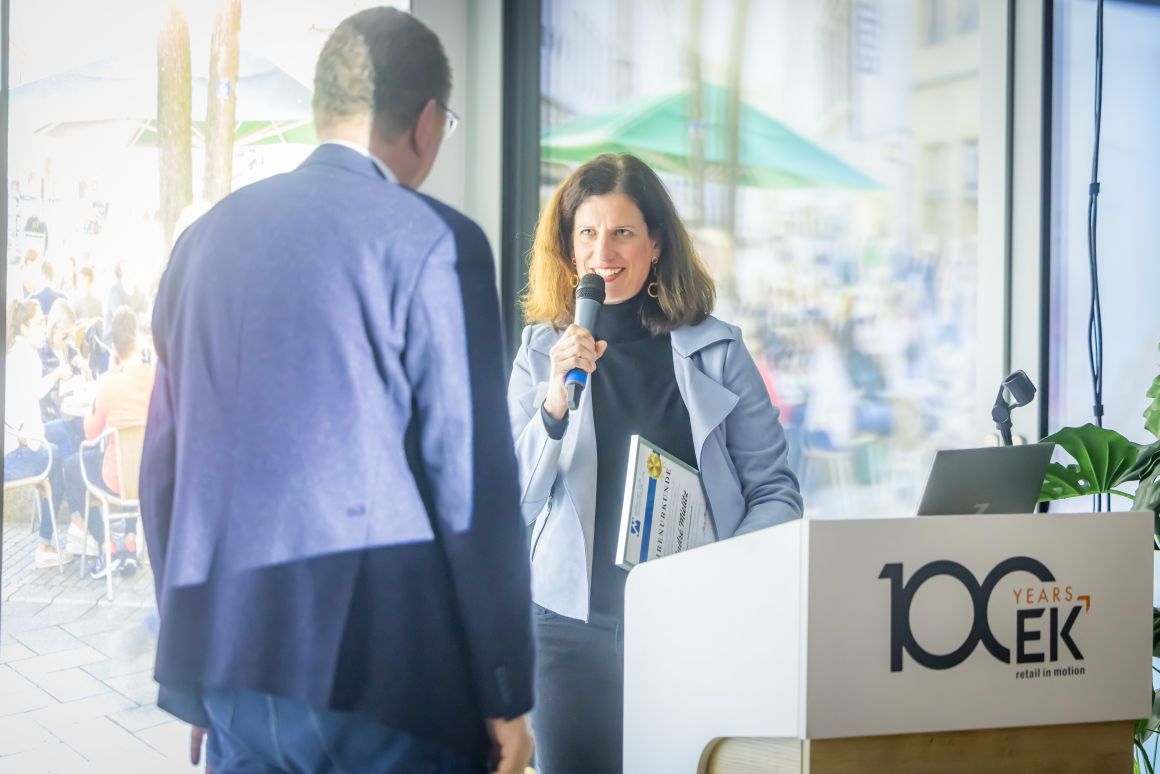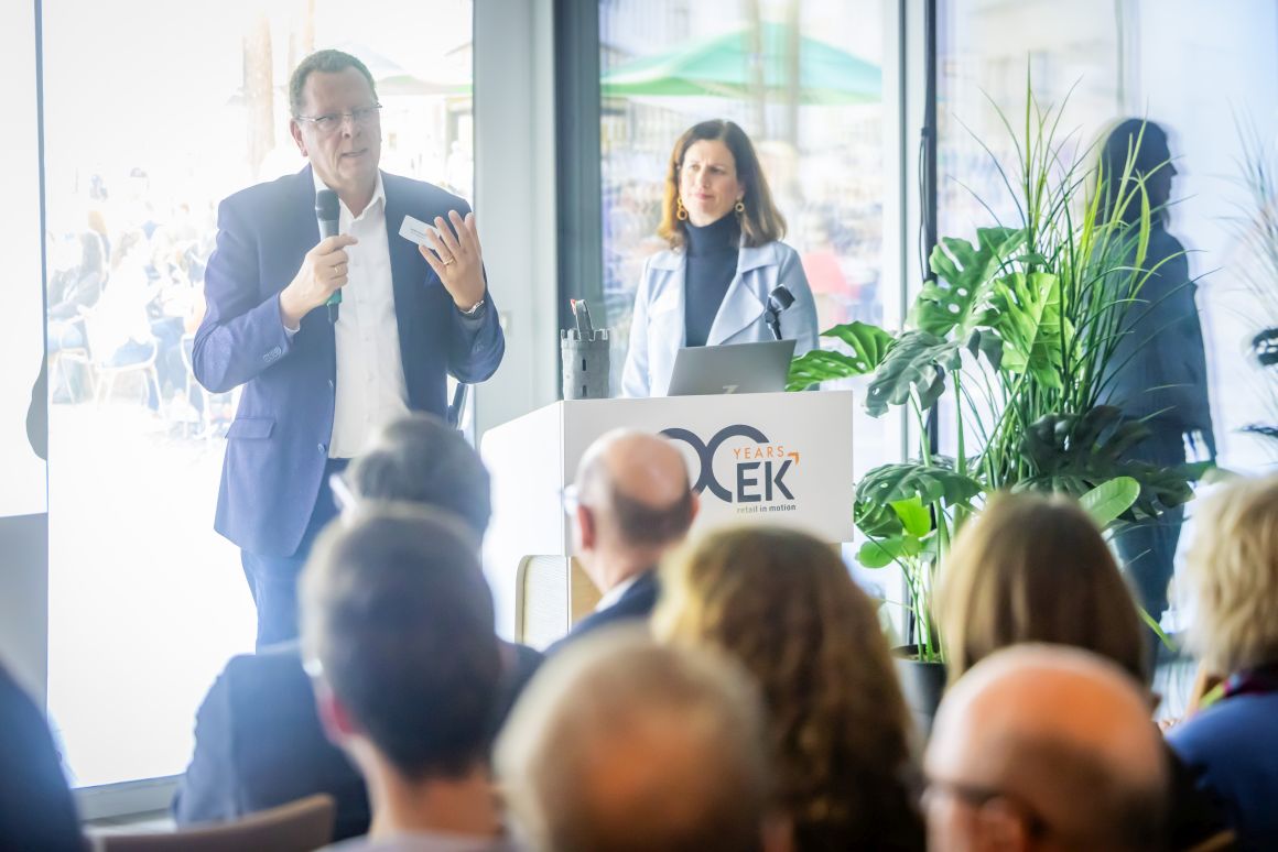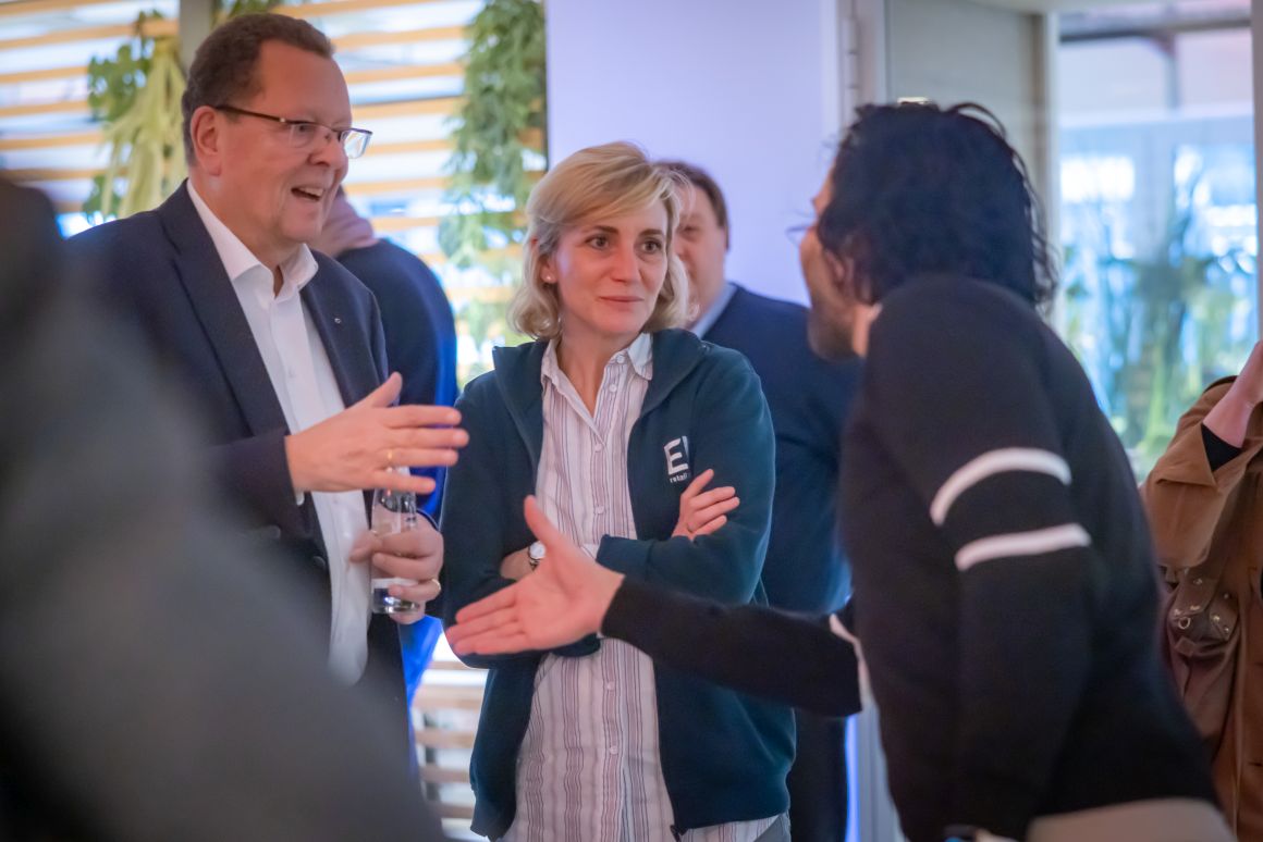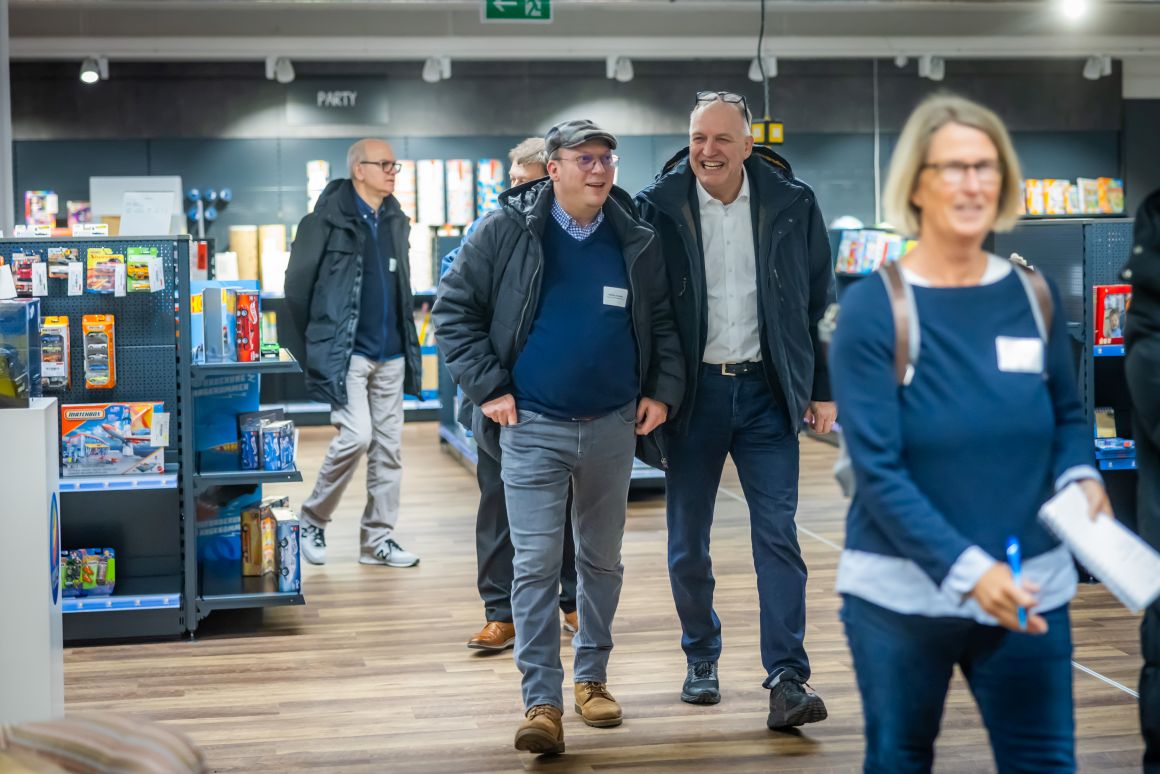 In zwei Gruppen ging es durch die Ausstellung auf mehreren Etagen, die drei Mal im Jahr zur Messefläche wird. Elektro, Spielwaren, Baby, Mode, Wohnen, Glas, Porzellan, Keramik, Heimwerken, Sport und Bücher – das Produkt- und Themenspektrum des vor 101 Jahren gegründeten Unternehmens ist vielfältig. Rund 4.000 inhabergeführte Einzelhandelsunternehmen mit 8.000 Geschäften in 14 europäischen Ländern sind Mitglieder bei EK Retail. Das Credo: Gemeinsam ist man stärker. Und so bieten die Bielefelder „ihren“ Einzelhändlern Services, die weit über eine gemeinsame Warenbeschaffung hinausgehen. „Unsere Kunden müssen sich um Bereiche wie zum Beispiel Warenwirtschaft oder Cyber Security nicht alleine kümmern“, so Daniel Kullmann. „Wir qualifizieren unsere Händler.“ Und so versteht sich EK Retail insgesamt als Kompetenznetzwerk. Egal, ob es um Telekommunikationsverträge, Fahrzeugleasing, Shopgestaltung oder Social-Media-Konzepte geht.