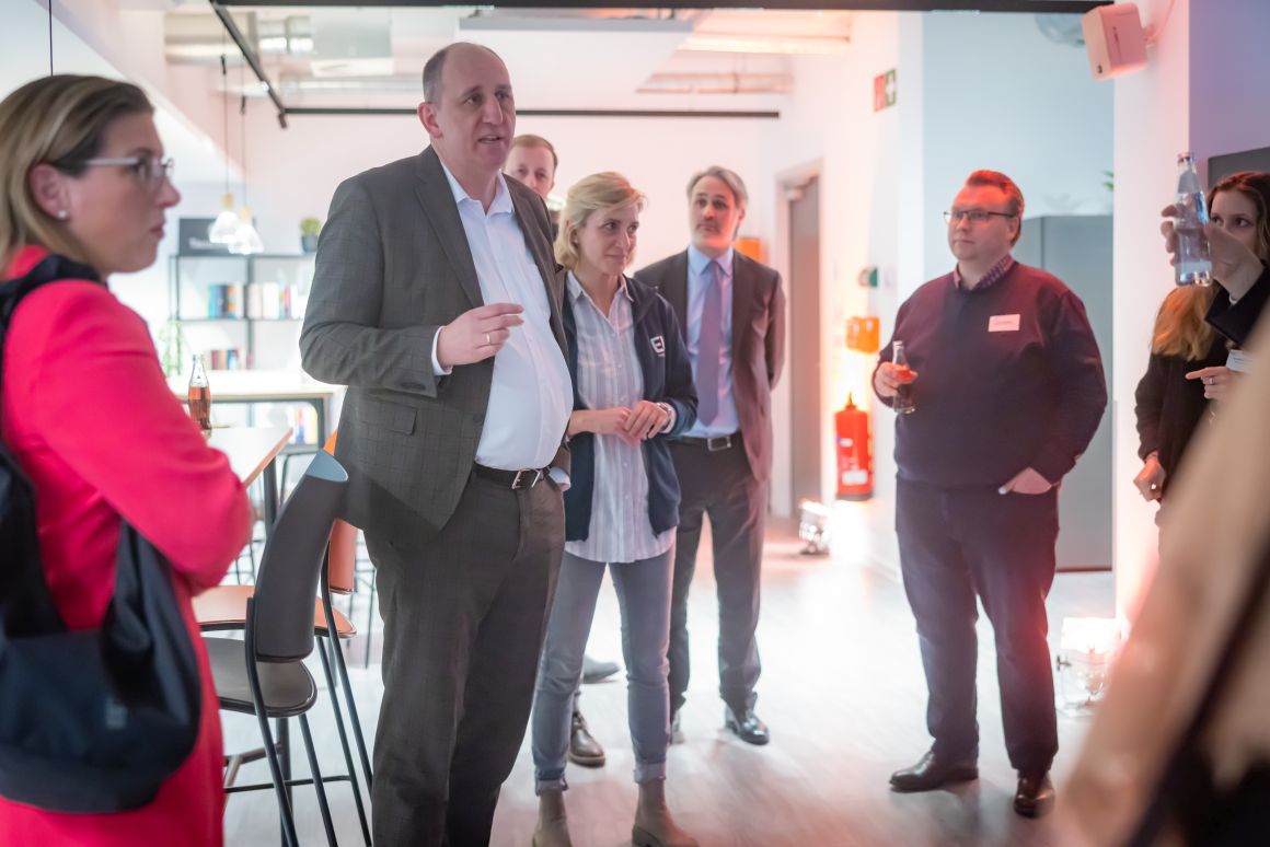 Beteiligung der Mitarbeitenden. „Wir haben uns auf freiwilliger Basis zu einer Projektgruppe zusammengeschlossen und konnten so gemeinsam mitgestalten“, berichtet Melina Wosnitza. So entstand eine moderne Arbeitsumgebung im Sinne des „New Work“ mit Co-Working Spaces, Ruhezonen und einem Work Café – der passende Rahmen für den individuellen Work-Mix aus Office, Home Office und mobilem Arbeiten. Die Mitglieder und Gäste des Marketing Clubs waren ob des umfangreichen Artikelangebots und der durchdachten Dienstleistungsangebote, die EK bietet, beeindruckt. Nach der spannenden Führung ging es zurück zum modern und gemütlich eingerichteten Work Café, das bei Veranstaltungen bis zu 200 Gästen Platz bietet.