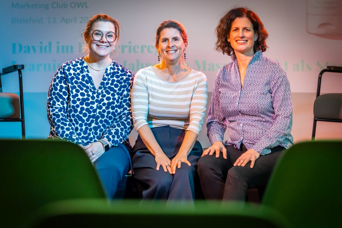 von links: Kristina Herrmann (Programmplanerin des Marketing Club Ostwestfalen-Lippe e. V.), Jessie Wölke (Founder von NO PLANET B), Sabine Schoner (Präsidentin des Marketing Club Ostwestfalen-Lippe e. V.) Foto: Sarah Jonek