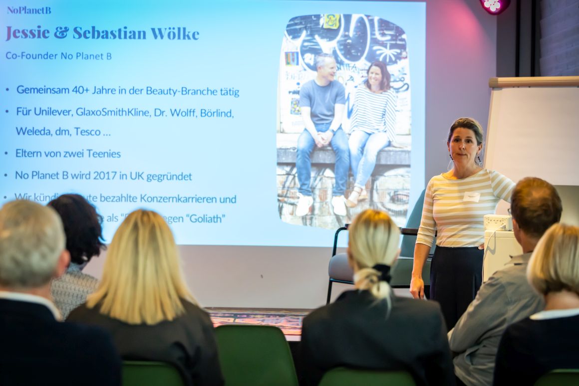 Heute ist No Planet B längst im Massenmarkt angekommen: Als Kooperationsmarke von dm-drogerie markt GmbH + Co. KG ist das Sortiment des Bielefelder Unternehmens in mehr als 2.100 Filialen vertreten, in 13 europäischen Ländern verfügbar und erzielt inzwischen Abverkäufe im siebenstelligen Bereich. Und doch fühlt sich die Marke weiterhin wie ein „David im Drogerieregal“ an – im direkten Wettbewerb mit etablierten Konzernen und Eigenmarken, die oft für wenige Cent angeboten werden. Mit den großen Marken kennen sich Jessie und Sebastian bestens aus. Gemeinsam verfügen sie über mehr als 40 Jahre Erfahrung in der Beauty- und Handelsbranche, unter anderem bei großen Konzernen. Sebastian war zudem selbst bei dm tätig. Ihr Know-how, gepaart mit der Entscheidung, sichere Karrieren zugunsten des eigenen Unternehmens aufzugeben, bildet die Grundlage für das, was Jessie rückblickend als „wilden Ritt“ beschreibt.